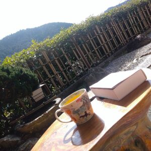 素足になってアーシングしながら読書。こういう時ってすべてに感謝できるんですよね。