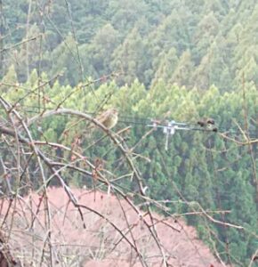 うちの垣根で眠る野鳥たちの誰か(笑)が梅の木にとまって朝日を浴びていました。こんなに小さくても凛とした姿に畏敬の念をもてますね。(近づくと飛び立つのでぼやけてますが)